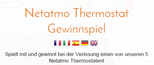 Aktuell können interessierte ein Netatmo Thermostat gewinnen. Mit diesem ist es möglich die Heizungen mit dem Smartphone zu regeln. Alles was man dazu braucht ist ein Facebook Account um am Gewinnspiel Teilzunehmen.